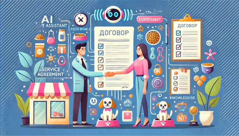 - Ассистент с типовой базой знаний, адаптированной для зоомагазина.